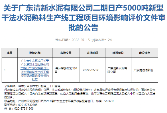 日前廣東省生態(tài)環(huán)境廳發(fā)布公示,公示內(nèi)容為海螺水泥旗下廣東清新水泥有限公司二期5000t/d熟料生產(chǎn)線環(huán)境影響報(bào)告書的批復(fù)。