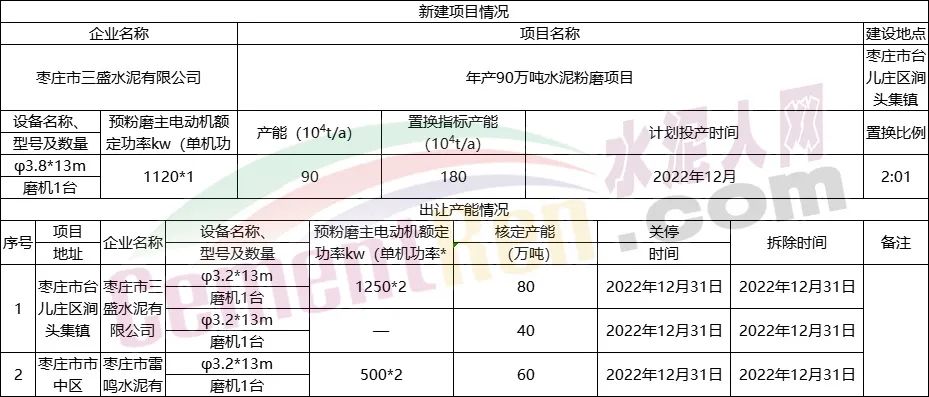 年產(chǎn)90萬噸水泥粉磨項目產(chǎn)能置換情況
