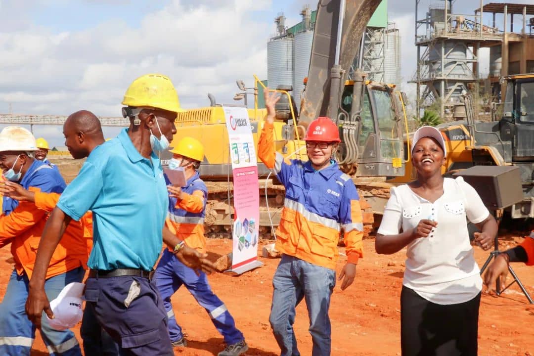 7月26日,坦桑尼亞馬文尼公司隆重舉行二期項(xiàng)目開工儀式,馬文尼公司主要領(lǐng)導(dǎo)、員工代表、土建項(xiàng)目施工方以及當(dāng)?shù)卣沓鱿藘x式。