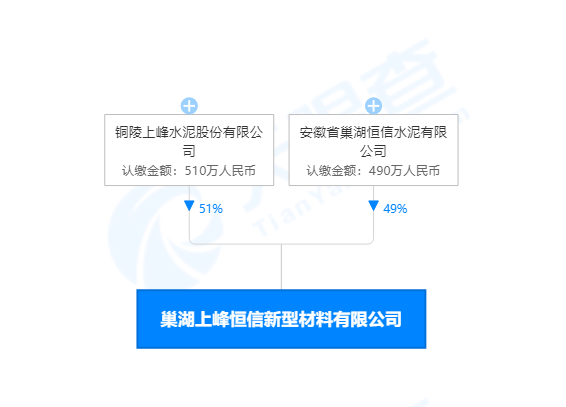 公司由銅陵上峰水泥有限公司和安徽省巢湖恒信水泥有限公司合股經(jīng)營(yíng),其中銅陵上峰水股份有限公司擁有51%股份為大股東。