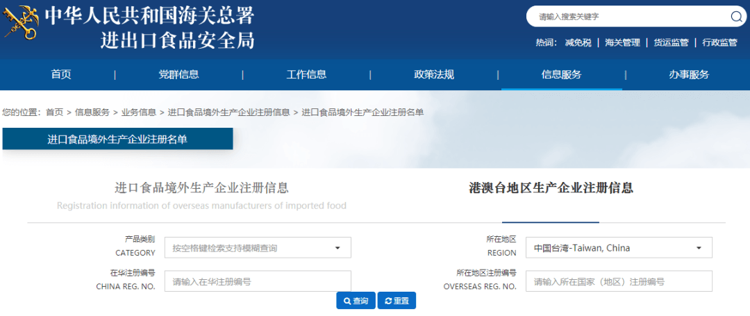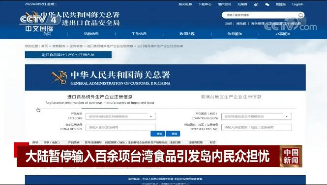 在海關總署官網港澳臺地區(qū)生產企業(yè)注冊信息頁面上查詢臺灣生產商資料,有部分企業(yè)的狀態(tài)欄已顯示“暫停進口”,其中包括維力食品、郭元益食品、味全食品、泰山、維格餅家等。據悉,這是依據海關總署第248號令《中華人民共和國進口食品境外生產企業(yè)注冊管理規(guī)定》,限制未完成更新注冊的臺灣廠商產品輸往大陸。
