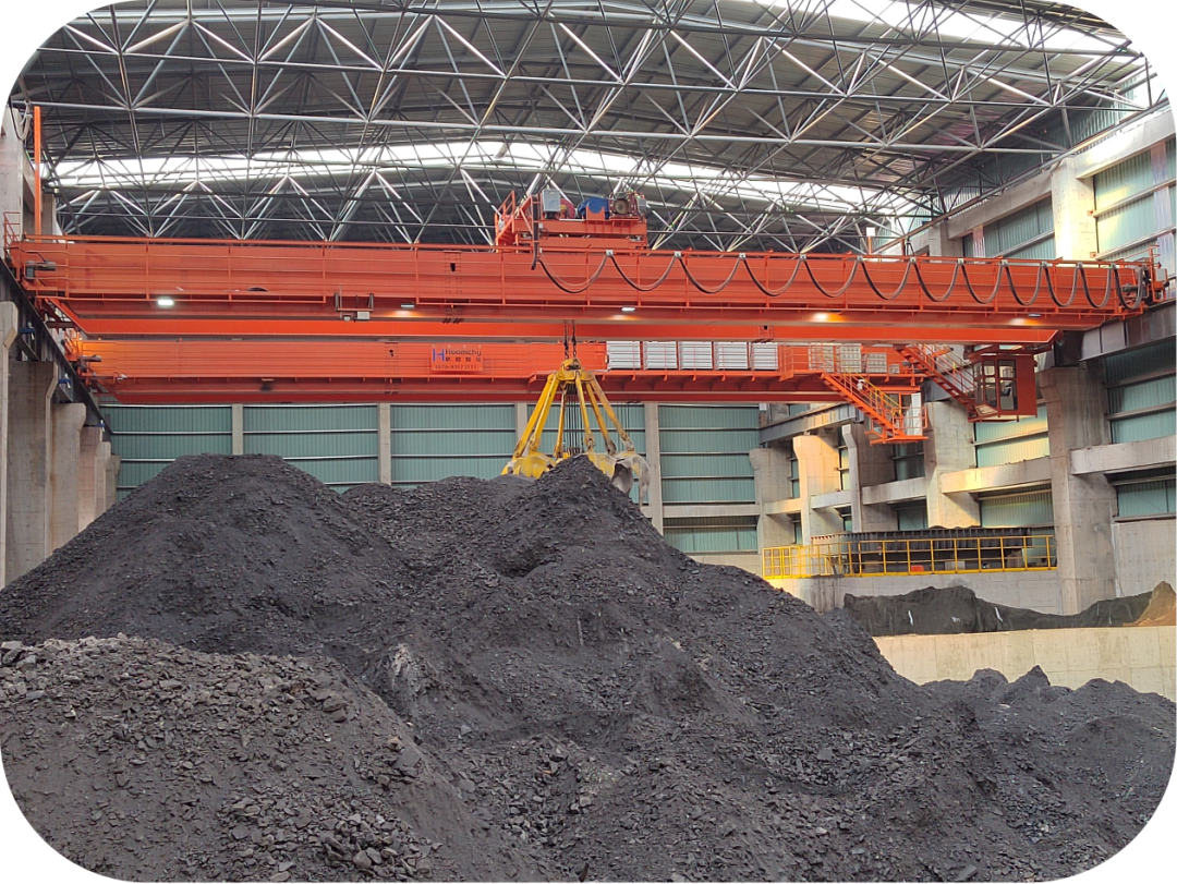 與通用抓斗抓取的其它單一物料不同,聯合儲庫內物料由不同類型固體物混合構成,根據不同的物料特性,杭起智能做了不同的解決方案。如在南方雨水較多的地區(qū),脫硫石膏的含水率高,導致物料黏著的特性,杭起智能采用的是多瓣抓斗以及對抓斗形態(tài)和表面的特殊處理,以防止黏料的情況發(fā)生,在北方的干燥的環(huán)境下,物料松散,則可以采用雙瓣抓斗,雙瓣抓斗具有清倉能力好,機械結構穩(wěn)定的特點。
