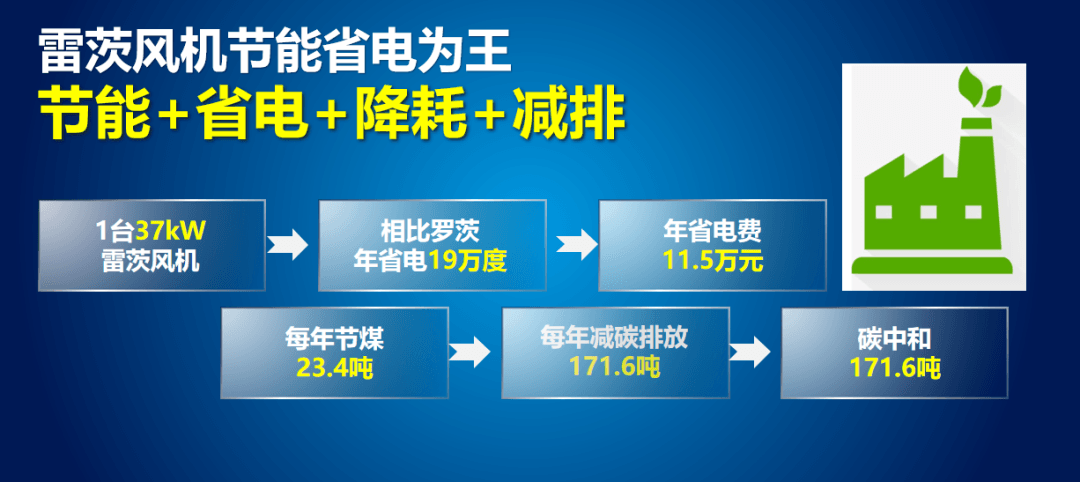 從經(jīng)濟(jì)效益看,用雷茨風(fēng)機(jī)取代傳統(tǒng)羅茨風(fēng)機(jī)為企業(yè)節(jié)約大量成本。例如一臺37kW的雷茨風(fēng)機(jī),相比羅茨風(fēng)機(jī)每年大約可以省電19萬度,省電費約11.5萬元,減碳排放約172噸。雷茨成為“碳達(dá)峰”時代名副其實的節(jié)能小標(biāo)兵。