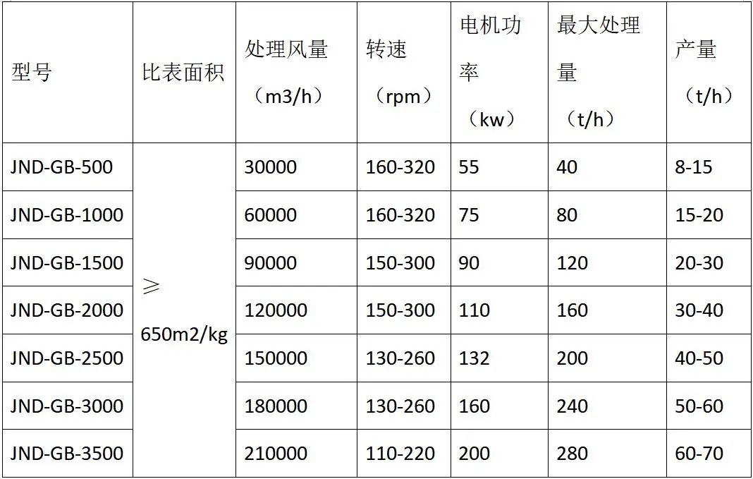 (1)使用JND-GB系列超細分級機為生產(chǎn)高比表超細粉產(chǎn)品創(chuàng)造了必要的條件。JND-GB系列超細分級機,對超細微粉的分級精度更高,微粉粒度在 1~20 μm 范圍內(nèi)任意調(diào)節(jié),非礦超微粉制備細度范圍:650m2/kg~1000m2/kg。配套高效球磨機,使得物料加工過程中物料溫度低于110℃,粉磨效率更高。