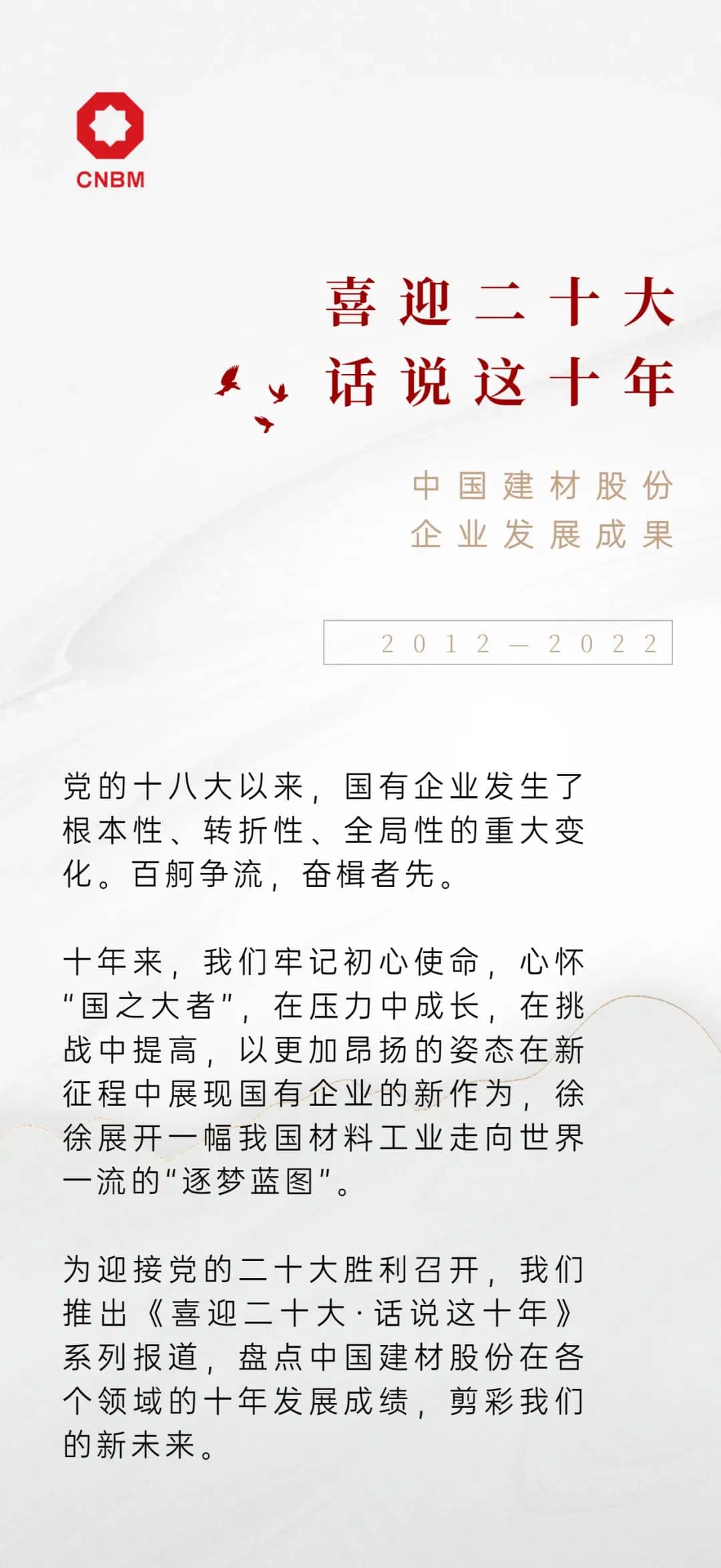 十年的探索與轉(zhuǎn)型,我們從一家以水泥為主的建材產(chǎn)品制造商,轉(zhuǎn)變?yōu)榛A(chǔ)建材、新材料、工程技術(shù)服務(wù)“三足鼎立”的綜合性材料企業(yè)。這是以打造“國(guó)之大材”的擔(dān)當(dāng)踐行“國(guó)之大者”,充分發(fā)揮綜合性材料領(lǐng)域國(guó)家隊(duì)、主力軍作用的時(shí)代新使命,也是我們推動(dòng)高質(zhì)量發(fā)展、創(chuàng)建世界一流的必經(jīng)之路。