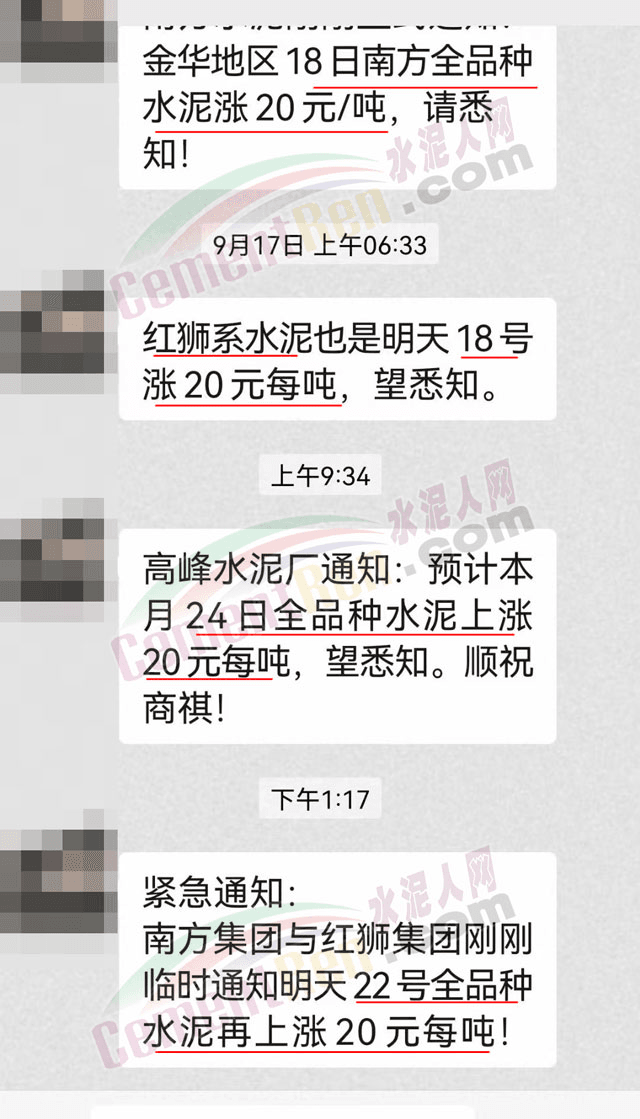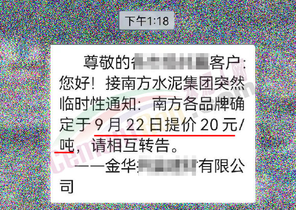 水泥人網通訊員消息,21日下午金華區(qū)域經銷商收到通知,紅獅水泥、南方水泥通知自22日起水泥價格上調20元/噸。據了解,區(qū)域內紅獅水泥、南方水泥曾于18日上調水泥價格20元/噸,兩次累計上調40元/噸。