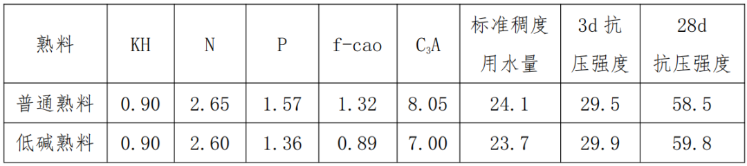 普通熟料和低堿熟料數(shù)據(jù)對(duì)比