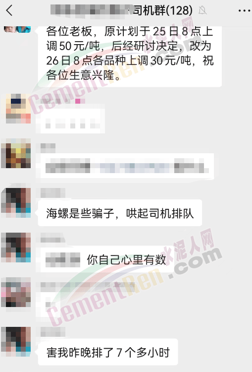 近來多區(qū)域水泥價格上漲,個別企業(yè)的營銷政策變動較大,下游經(jīng)銷商和司機多有抱怨。有司機在群里說:“海螺是騙子,害我排了7個多小時。 ”