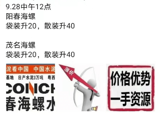 據(jù)經(jīng)銷商反饋,海螺水泥銷售經(jīng)理及經(jīng)銷商多在群里或公眾社交媒體上發(fā)布調(diào)價消息,但是落實到電商系統(tǒng)里的時間與通知時間偶爾也會有出入。