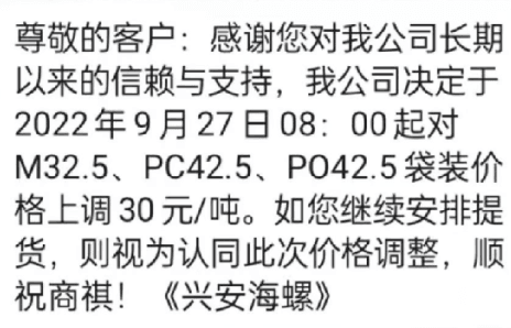 海螺漲價只發(fā)調(diào)價消息,不見蓋章公函