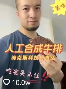 坐擁近800萬粉絲的辛吉飛發(fā)布的視頻中,合成食物制作視頻讓人大開眼界,你吃的牛不是牛,羊不是羊,雞不是雞,肉不是肉,我們吃的其實都是化工品。