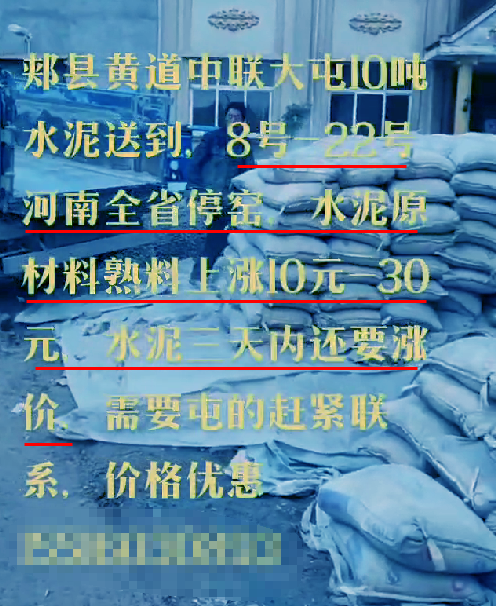 有水泥經(jīng)銷商通知:“8號-22號河南全省停窯,水泥原材料熟料上漲10元-30元,水泥三天內(nèi)還要漲價,需要囤水泥的趕緊聯(lián)系!”
