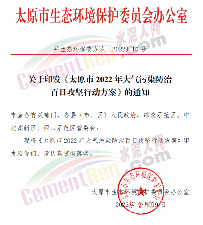 前不久,太原市生態(tài)環(huán)境保護(hù)委員會辦公室印發(fā)《太原市2022年大氣污染防治百日攻堅行動方案》,針對秋冬季對大氣環(huán)境質(zhì)量影響較大的PM2.5、PM10、NO2和SO2四項指標(biāo),采取強(qiáng)有力措施,大幅削減顆粒物、氮氧化物、二氧化硫等污染排放。經(jīng)研究,決定在全市開展大氣污染防治百日攻堅系列行動。百日攻堅時間從今年9月22日至12月31日。