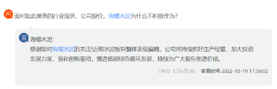 日前,有投資者向海螺水泥提問,面對(duì)如此蕭條的行業(yè)現(xiàn)狀、公司股價(jià),海螺水泥為什么不積極作為?