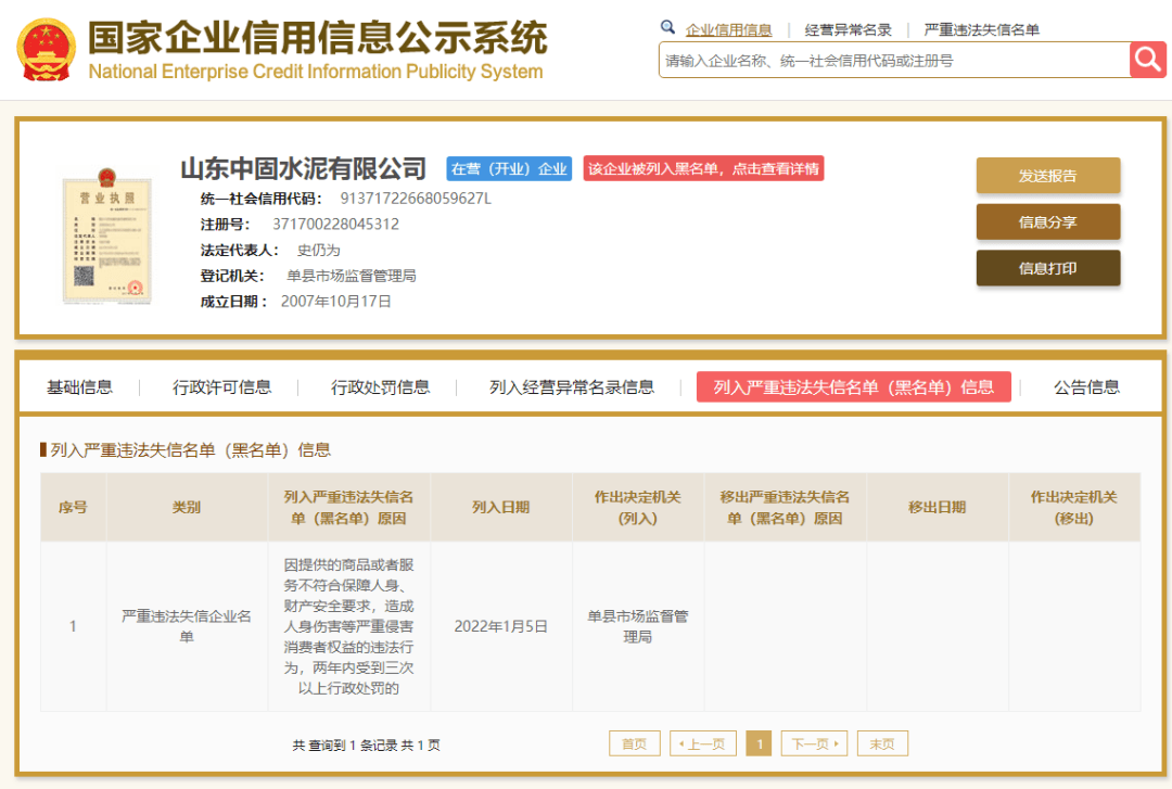 今年3月中旬,國家市場監(jiān)管總局曾集中曝光一批嚴(yán)重違法失信名單典型案例涉及食品、重要工業(yè)產(chǎn)品和知識(shí)產(chǎn)權(quán)等領(lǐng)域。其中包括山東中固水泥有限公司生產(chǎn)不合格水泥案。