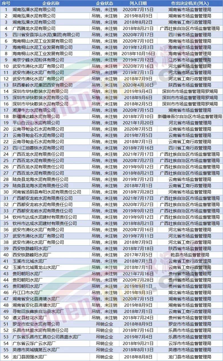 據(jù)水泥人網(wǎng)查詢,近年來被列入嚴(yán)重違法失信的水泥企業(yè)并非只有這一家。僅2022年1月至今就有70家水泥企業(yè)被列嚴(yán)重違法失信企業(yè)名單。