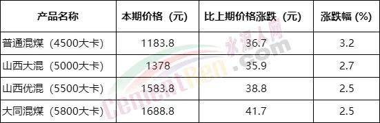 2022年10月下旬流通領域重要生產(chǎn)資料市場價格變動情況顯示,2022年10月下旬與10月中旬相比,15種產(chǎn)品價格上漲。其中4500-5800大卡煤炭報價在1183.8-1688.8元/噸,較10月中旬上漲36.7-41.7元/噸,漲幅2.5-3.2%。