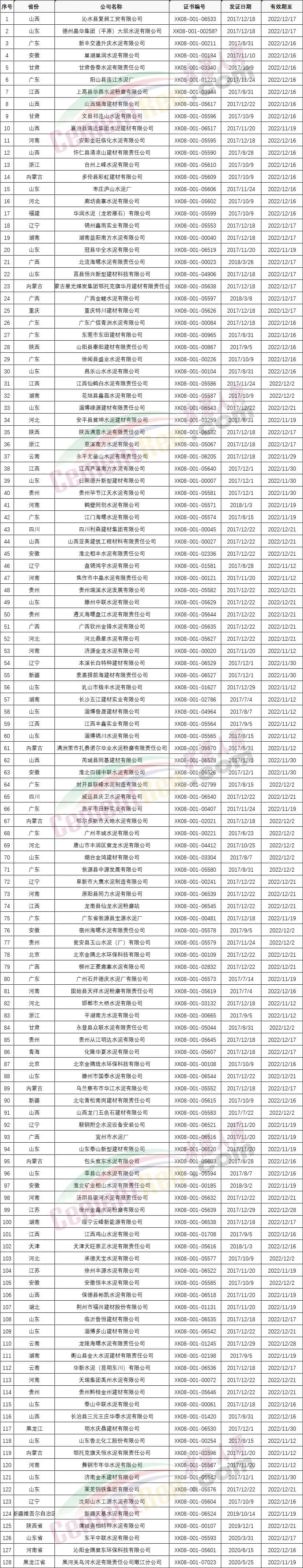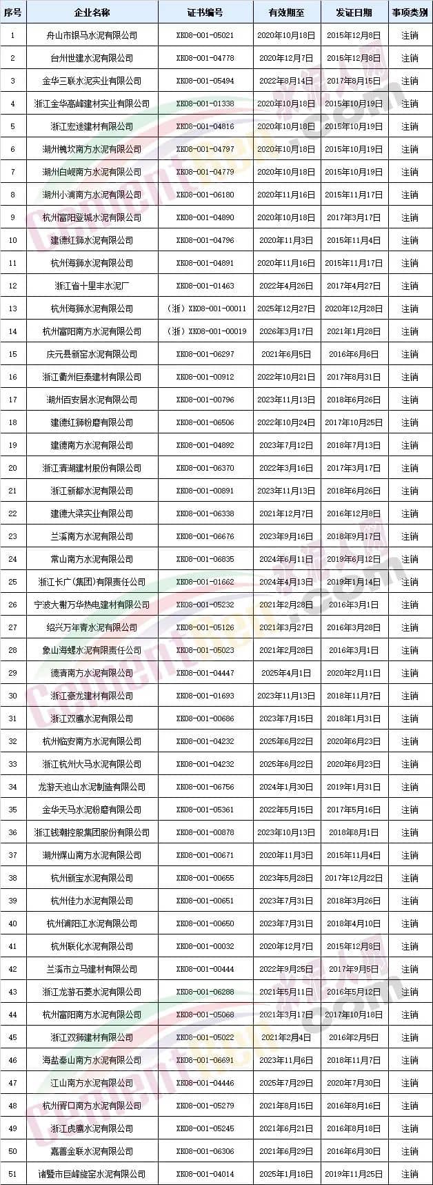 浙江省51個(gè)編號(hào)水泥生產(chǎn)許可證處于注銷狀態(tài);