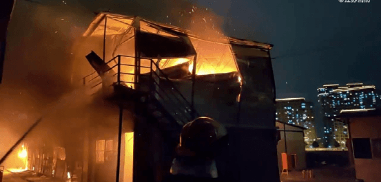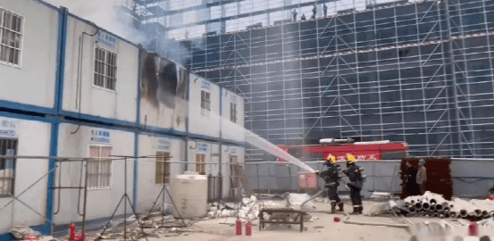 2022年3月6日,常州,一處工地宿舍起火,工人及時逃離。消防員趕到后發(fā)現,現場是一排兩層彩鋼瓦結構的簡易宿舍樓,彩鋼瓦在高溫的炙烤下已經發(fā)生變形,消防員一邊撲救,一邊大喊房子里的人撤離。