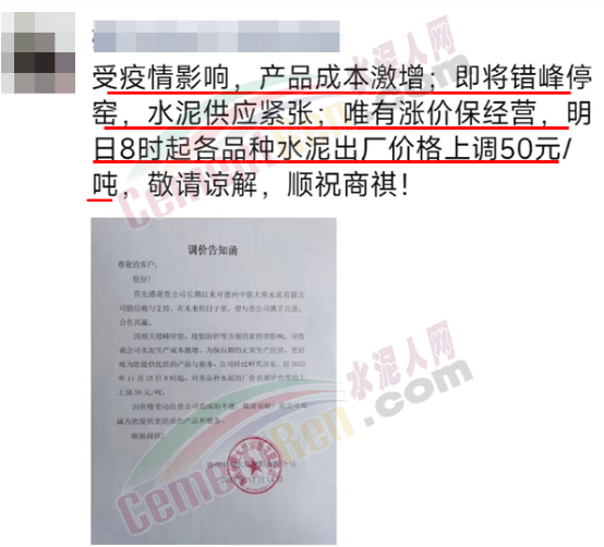 經(jīng)銷商則表示,受疫情影響,產(chǎn)品成本激增。水泥供應緊張,唯有漲價保經(jīng)營。