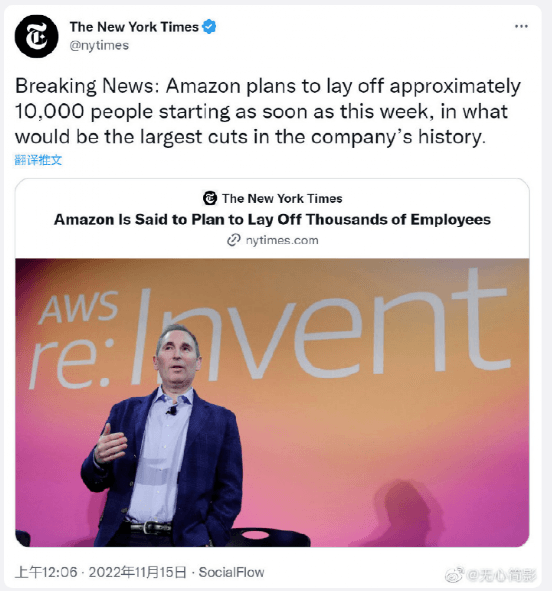 繼推特、臉書之后,美國(guó)電商巨頭亞馬遜計(jì)劃從本周開始大裁員,預(yù)計(jì)將有1萬(wàn)名企業(yè)員工和技術(shù)崗位員工受到波及。