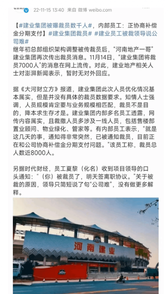 河南“地產(chǎn)一哥”建業(yè)集團(tuán)將裁員7000人
