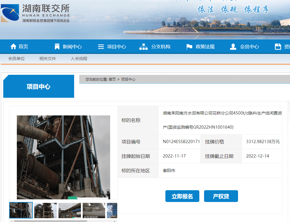 11月17日湖南聯(lián)交所發(fā)布《湖南耒陽南方水泥有限公司花橋分公司4500t/d熟料生產(chǎn)線閑置資產(chǎn)轉(zhuǎn)讓的消息,轉(zhuǎn)讓底價3312.982138萬元。