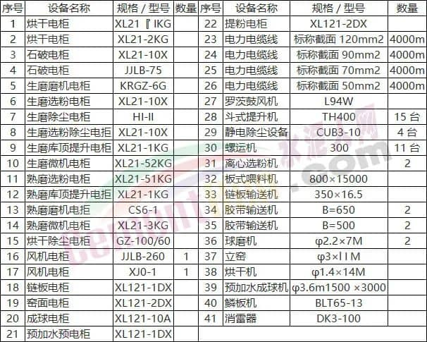 A、機器設備清單范圍:從石灰石破碎進料口重型板喂機至窯頭排風機煙囪止,包含:煤粉制備及輸送系統(tǒng)、原料配料站及輸送系統(tǒng)、原料粉磨及生料入庫系統(tǒng)、燒成窯尾及廢氣處理系統(tǒng)、生料均化庫及生料入窯系統(tǒng)、原煤堆場及輸送系統(tǒng)。