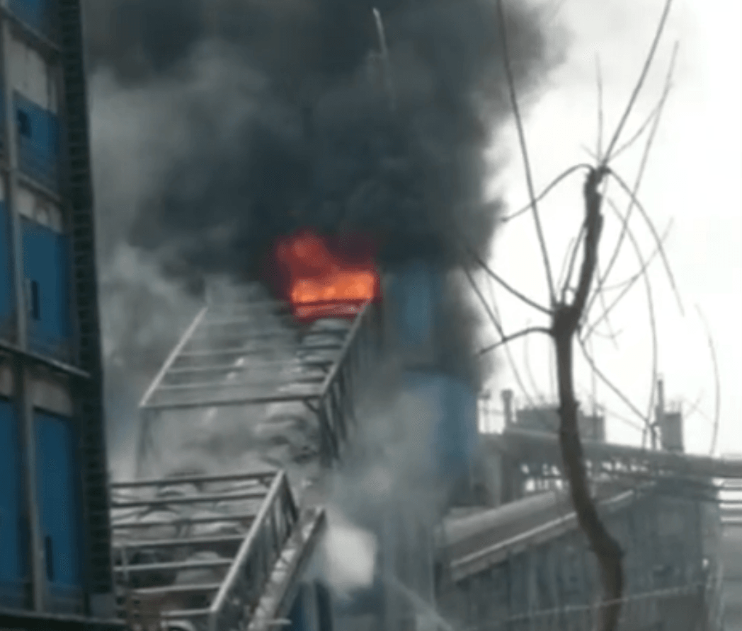 5 陜西某水泥廠起火,原因系火星掉落點燃廢棄橡膠運輸帶
