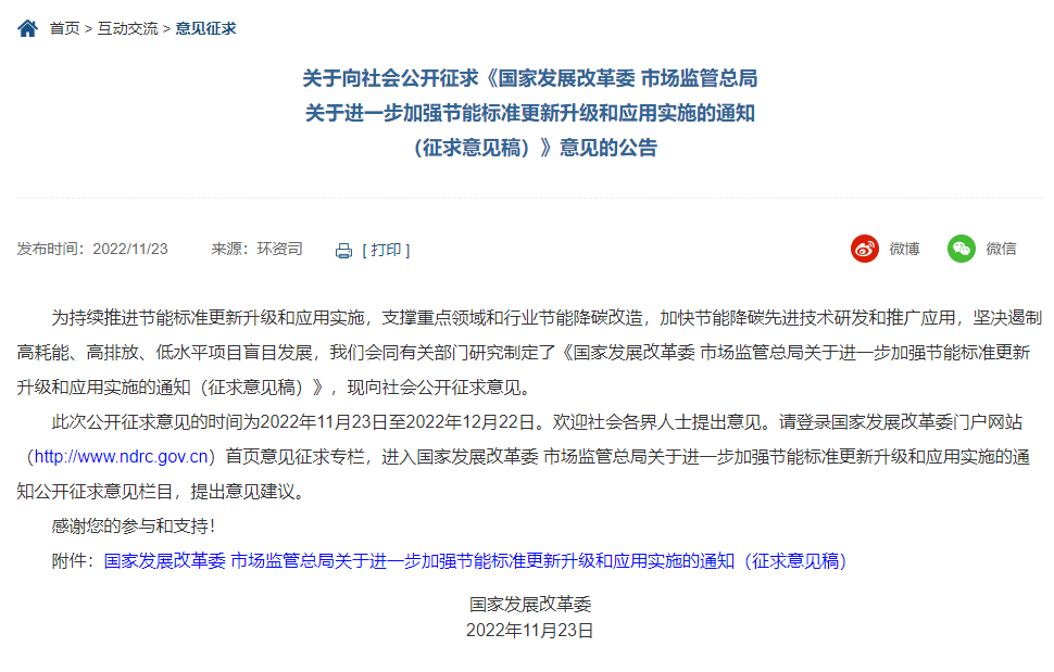 日前,國(guó)家發(fā)改委發(fā)布公告,對(duì)《國(guó)家發(fā)展改革委 市場(chǎng)監(jiān)管總局關(guān)于進(jìn)一步加強(qiáng)節(jié)能標(biāo)準(zhǔn)更新升級(jí)和應(yīng)用實(shí)施的通知(征求意見(jiàn)稿)》公開(kāi)征求意見(jiàn)。