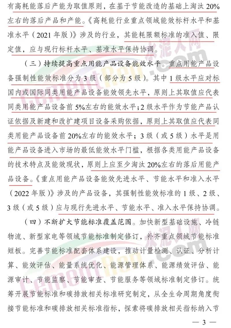 產(chǎn)能已經(jīng)飽和的行業(yè),主要產(chǎn)品能效水平原則上應(yīng)達(dá)到行業(yè)強(qiáng)制性能耗限額標(biāo)準(zhǔn)先進(jìn)值,主要用能產(chǎn)品設(shè)備能效水平原則上應(yīng)達(dá)到強(qiáng)制性能效標(biāo)準(zhǔn)1級(jí)水平。