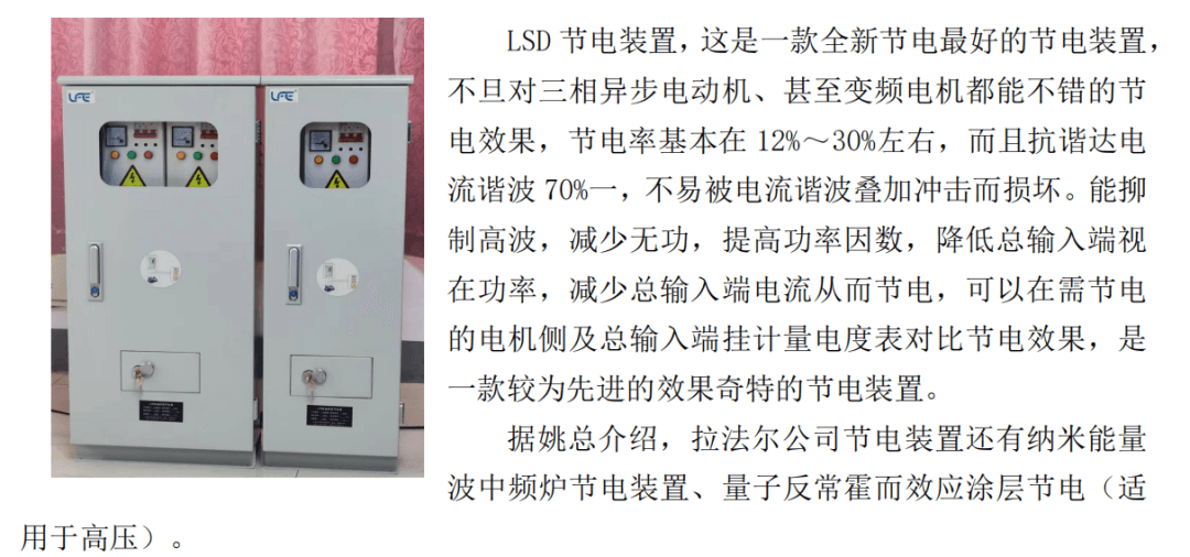 目前已有較多企業(yè)三相異步動(dòng)力及帶有變頻裝置的電機(jī)上安裝上了LSD節(jié)電裝置,如水泵、風(fēng)機(jī)等,(節(jié)電效果對(duì)比均可以電度表為準(zhǔn))為較多企業(yè)節(jié)約了可觀的浪費(fèi)電能。