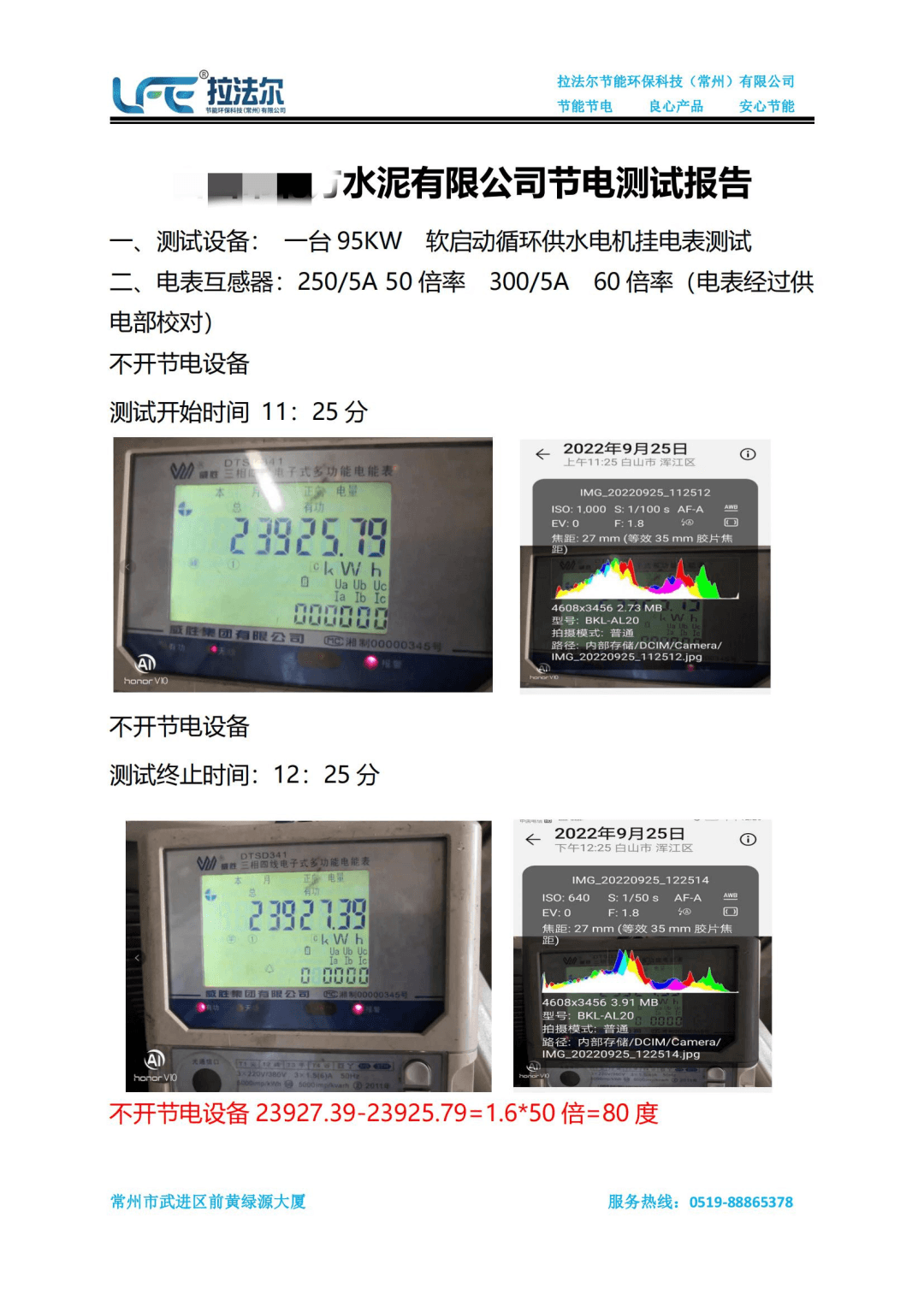 中建材集團(tuán)旗下某水泥企業(yè)節(jié)電測(cè)試報(bào)告