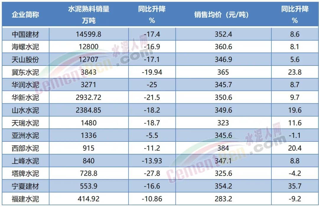 水泥上市公司成本、價格上漲,產(chǎn)銷量下滑