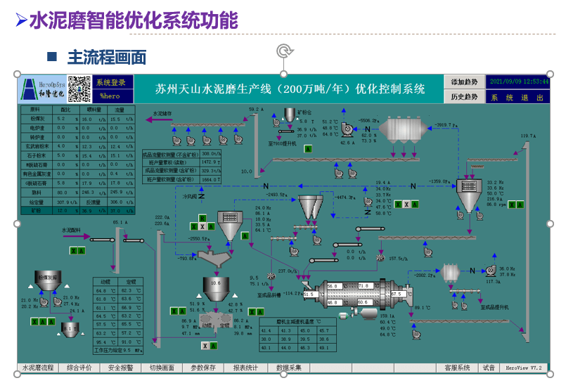 3.創(chuàng)造性地在水泥生產(chǎn)過程中采用了“自尋優(yōu)”算法,結(jié)合機(jī)理模型、數(shù)據(jù)模型和專家經(jīng)驗(yàn)三者進(jìn)行變步長、變周期尋優(yōu),使系統(tǒng)始終運(yùn)行在最佳工況,控制主界面如下圖: