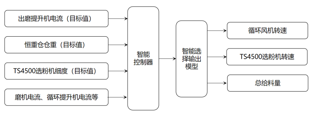 水泥磨智能控制系統(tǒng)基于RASO系統(tǒng)、水泥磨生產(chǎn)工藝以及資深操作專家的經(jīng)驗(yàn),設(shè)計(jì)了整體的智能控制思路,從而實(shí)現(xiàn)多變量之間的協(xié)調(diào)控制和全局優(yōu)化。具體包含以下幾個(gè)方面的控制單元,輥壓機(jī)負(fù)荷優(yōu)化控制單元、水泥磨負(fù)荷優(yōu)化控制單元、水泥質(zhì)量優(yōu)化控制單元等。通過對(duì)這些控制單元的協(xié)調(diào),智能控制系統(tǒng)實(shí)現(xiàn)對(duì)整體水泥磨系統(tǒng)的穩(wěn)定和優(yōu)化操作。