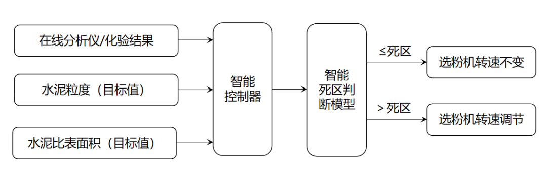 水泥成品粒度是水泥質(zhì)量的核心指標(biāo),主要依托在線粒度儀實(shí)時(shí)測量(或化驗(yàn)室數(shù)據(jù))的粒度數(shù)據(jù),實(shí)現(xiàn)對(duì)選粉機(jī)轉(zhuǎn)速設(shè)的實(shí)時(shí)控制。粒度控制主要以先進(jìn)預(yù)測控制方法為基礎(chǔ),實(shí)現(xiàn)對(duì)選粉機(jī)進(jìn)行自動(dòng)控制,控制框圖如下: