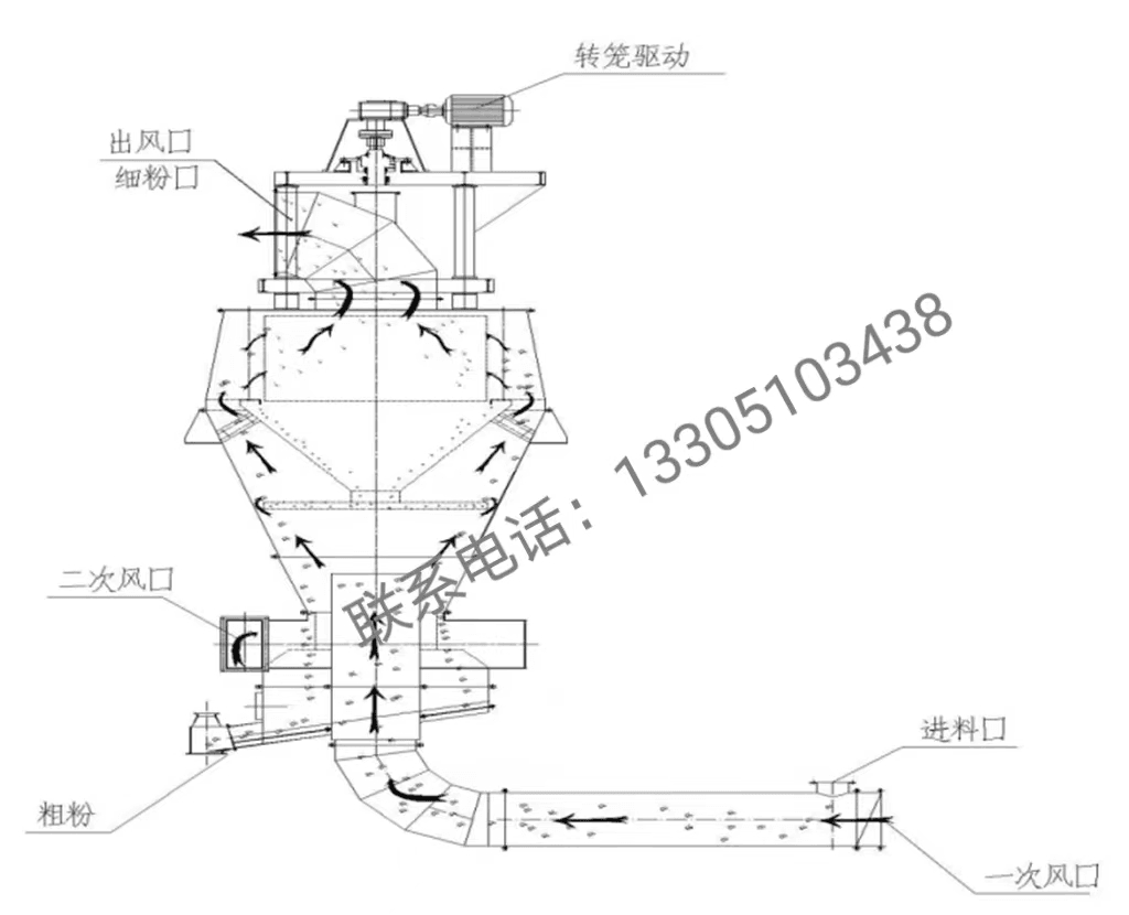 該選粉機(jī)突破了原有超細(xì)分級機(jī)生產(chǎn)能力小、選粉效率低,比表面積難于提高、微細(xì)粉宜團(tuán)聚難于分散等多項(xiàng)技術(shù)瓶頸,解決了超細(xì)分級設(shè)備無法實(shí)現(xiàn)大規(guī)模分選超細(xì)微粉的關(guān)鍵技術(shù)難題。該選粉機(jī)分級精度準(zhǔn),選粉效率高,選粉效率平均值達(dá)到80.6%。在高選粉效率的情況下,保證適中的循環(huán)負(fù)荷(120%),以保證物料在超細(xì)球磨機(jī)內(nèi)能夠得到充分的研磨,可根據(jù)用戶需要生產(chǎn)比表在700~1000m2/kg的超細(xì)微粉。