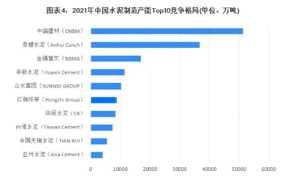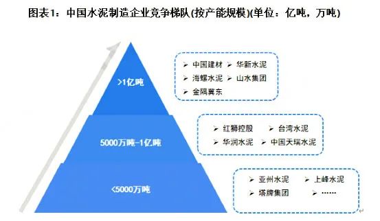 各大龍頭企業(yè)按年產(chǎn)能劃分,可分為3個競爭梯隊。其中,年產(chǎn)能大于1億噸的企業(yè)有中國建材 、海螺水泥、華新水泥、山水水泥、金隅冀東;年產(chǎn)能在5000萬噸至1億噸之間的企業(yè)有紅獅、臺泥、華潤、天瑞等,其余企業(yè)的年產(chǎn)能多在5000萬噸以下。其中中國建材、海螺水泥、金隅冀東三大龍頭占據(jù)了水泥行業(yè)總產(chǎn)能的37.69%,產(chǎn)能排名前十的企業(yè)合計占比達57%。且絕大多數(shù)都有在利用并購重組等方式增強自身競爭力。