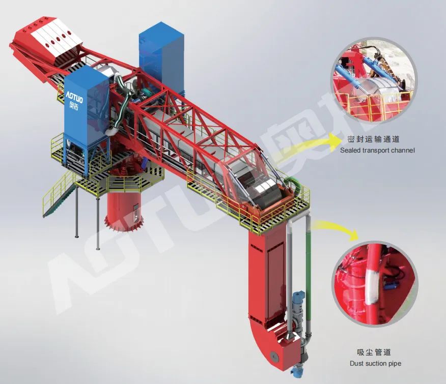 螺旋取料機(jī)內(nèi)置吸塵、抑塵系統(tǒng),在取料過程中可快速收集由物料流動、料層坍塌引起的揚(yáng)塵。后續(xù)提升輸送的皮帶機(jī)內(nèi)部全密封,在皮帶機(jī)尾部設(shè)有袋式收塵器,密封通道內(nèi)產(chǎn)生微負(fù)壓,解決了粉塵飛揚(yáng)等環(huán)保問題,徹底解決了抓斗式卸船開放式作業(yè)的撒料、漏料、冒灰、揚(yáng)塵等難題,是傳統(tǒng)抓斗式卸船機(jī)的理想取代產(chǎn)品。