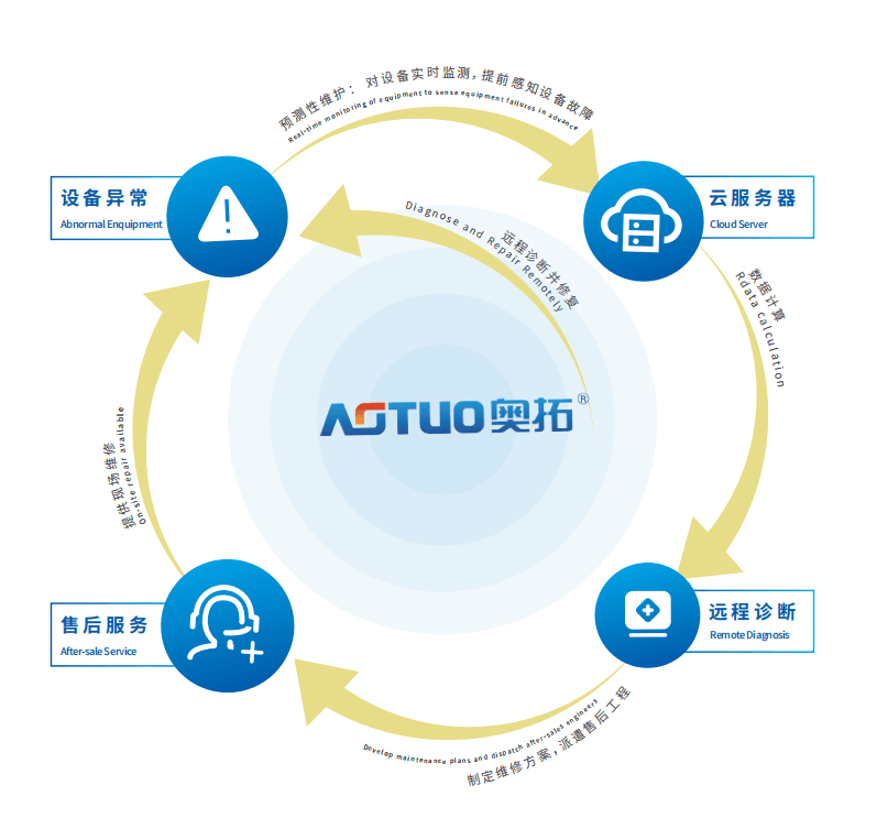 通過采集設(shè)備動態(tài)信息、檢測機(jī)組運(yùn)作狀態(tài)、分析運(yùn)行數(shù)據(jù)和診斷設(shè)備故障,不僅提高了售后維護(hù)效率及設(shè)備運(yùn)行可靠性,保障了維修質(zhì)量,降低了設(shè)備故障停機(jī)時間,延長了機(jī)組運(yùn)行周期,實(shí)現(xiàn)了設(shè)備的高效、穩(wěn)定、連續(xù)使用,形成完整的售后維護(hù)的預(yù)知維修集成化平臺管理”。