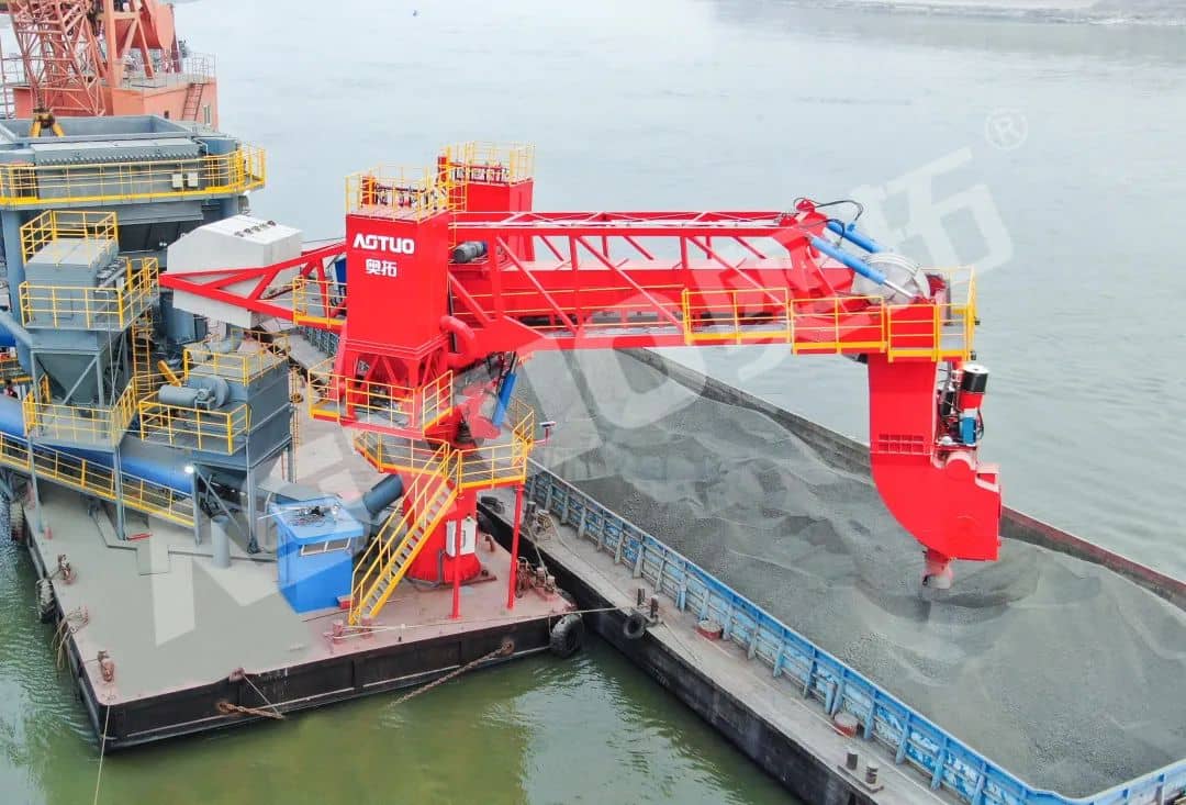 據(jù)水泥人網(wǎng)了解,奧拓股份熟料卸船機(jī)不僅可以接卸顆粒狀、琢磨性強(qiáng)的水泥熟料,還能接卸煤炭、砂石料、木薯片及水泥、礦粉等粉狀物料,接卸種類多樣,廣泛用于各類港口、碼頭散料貨船的卸料作業(yè)。