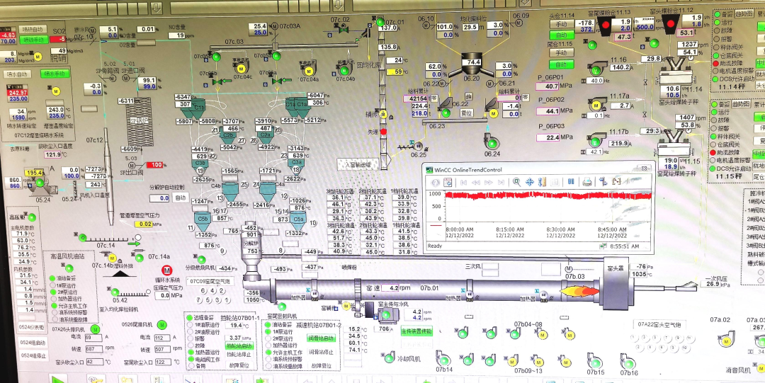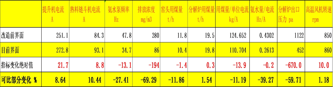 目前系統(tǒng)運(yùn)行穩(wěn)定:NOx 排放濃度從原來(lái)控制 300mg/m3 以下,降低到100mg/m3以下;在降低排放濃度的同時(shí),氨水用量比之前降低了 27.4%;熱耗比之前降低了 11.19%;余熱發(fā)電量也有所增加。系統(tǒng)產(chǎn)量遠(yuǎn)遠(yuǎn)超過(guò)該廠建廠以來(lái)的歷史最高水平。