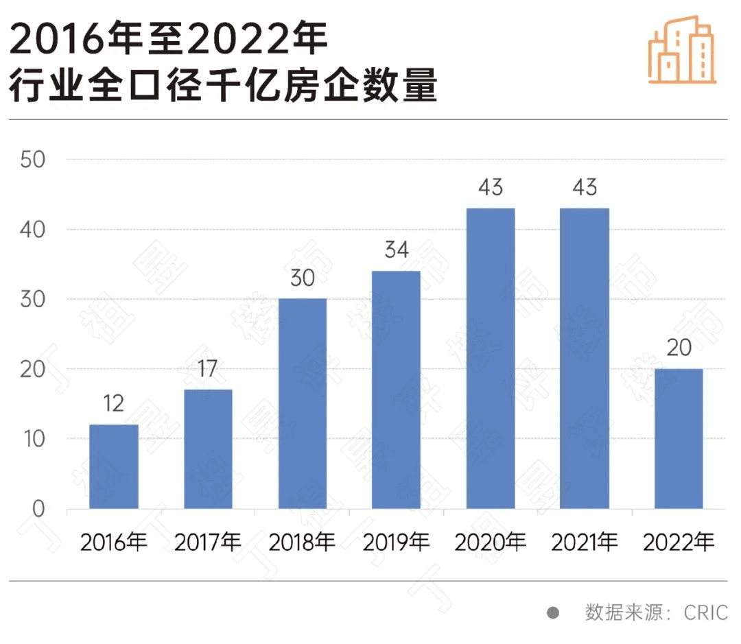 房地產(chǎn)行業(yè)經(jīng)歷了長達十多年的黃金時代,物極必反是永遠不變的市場規(guī)律,近幾年來,國內(nèi)各大知名房企持續(xù)暴雷,千億房企數(shù)量也隨之從峰值逐漸回落,千億房企只剩下20家,較2021年峰值減少了23家,一夜回到了五年前。