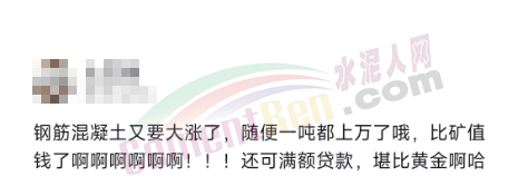 另一經(jīng)銷商發(fā)視頻稱“鋼筋混凝土又要大漲了,隨便一噸都上萬了。比礦值錢了,還可滿額貸款,堪比黃金啊!”