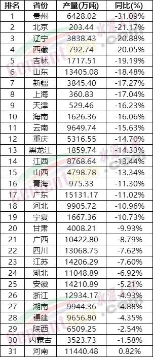 國家統(tǒng)計局數(shù)據(jù)顯示,12月水泥產(chǎn)量為1.68億噸,同比下降12.3%;2022年產(chǎn)量為21.18億噸,同比下降10.8%。從分省數(shù)據(jù)來看,2022年全國4個省市水泥產(chǎn)量降幅超20%,貴州降31.09%、北京降21.17%、遼寧降20.88%、西藏降20.05%。