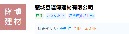 據(jù)查詢,襄城縣隆博建材有限公司為新四板上市的小微企業(yè),法定代表人張朝迎。企業(yè)經(jīng)營(yíng)范圍為水泥粉磨生產(chǎn),建材銷售。企業(yè)注冊(cè)地址為河南省許昌市襄城縣庫(kù)莊鄉(xiāng)西沈村。