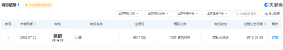 企業(yè)知識(shí)產(chǎn)權(quán)商標(biāo)信息顯示,企業(yè)注冊(cè)商標(biāo)為“巨威”品牌。