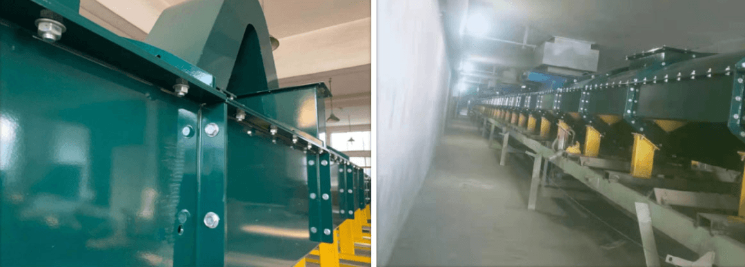其結(jié)構(gòu)特點(diǎn)除下料口處理(導(dǎo)流槽),檢修孔,回程清灰三種結(jié)構(gòu),與精密微動(dòng)力導(dǎo)料槽相同外,還有針對(duì)性地在各法蘭間使用密封條進(jìn)行密封,防溢裙邊磨損時(shí),依靠橡膠彈力,自動(dòng)跟蹤皮帶進(jìn)行密封。