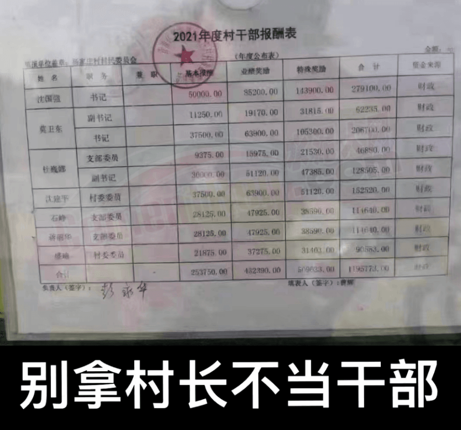 不久前,一份村干部報(bào)酬表在網(wǎng)上熱傳,水泥人網(wǎng)注意到,填報(bào)單位寫著某村民委員會(huì),列出了2021年度書記、副書記、村委委員、支部委員等七位村干部的報(bào)酬明細(xì)。